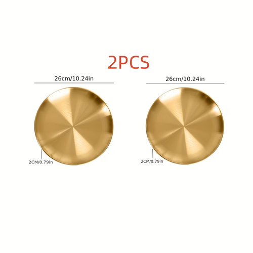 2 pcs Versatile Golden Stainless Steel Serving Platter - Perfect for Pizza, Desserts, Steak