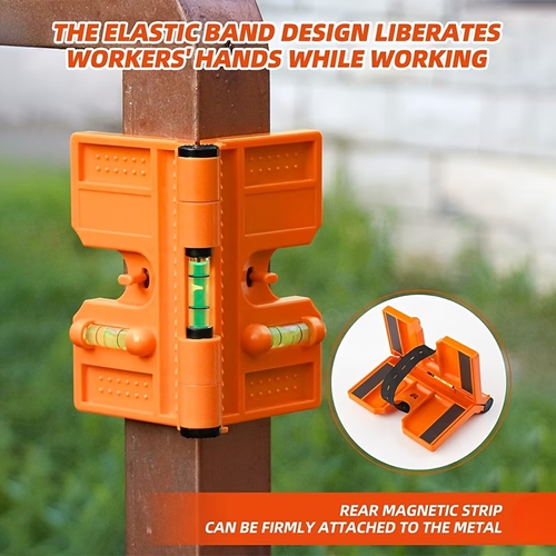 One Magnetic Post Level, Featuring a 270° Adjustable Design, a Folding Mechanism, And a 90-Degree Capability for Leveling Posts And Pipes. It Includes Horizontal And Vertical Bubbles, Making It Ideal for Securing Wooden Pillars And Pipelines