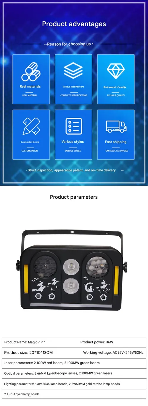 2026 Magic Seven-in-One Stage Laser Light Party KTV Bar DJ Flash Effect Light Ambient Light